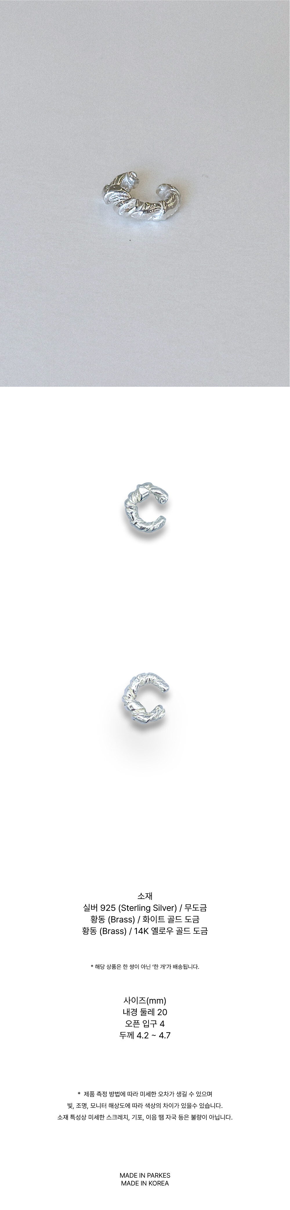 투박하면서도 섬세한 트위스트 이어커프는 시크하면서 세련된 스타일을 완성 시켜줄 거예요.